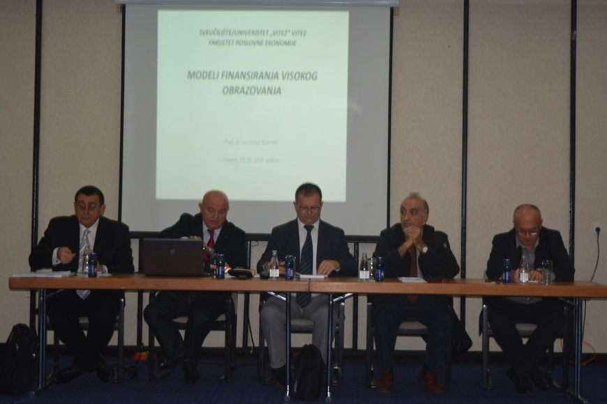 U uvodnome dijelu Okrugloga stola sudionicima se obratio prof. dr. Enver Halilović, ravnatelj Agencije za razvoj visokog obrazovanja i osiguranje kvalitete, koji je prisutne upoznao sa stanjem razvoja sektora visokog obrazovanja u Bosni i Hercegovini i, između ostaloga, govorio i o izazovima standardizacije i harmonizaciji kriterija za rad kao i o problemu politizacije na pojedinim sveučilištima u BiH, te iznio temeljne informacije o obvezi akreditacije studijskih programa na visokoškolskim ustanovama. Glavno uvodno predavanje iznio je prof. dr. Jusuf Kumalić, sa Sveučilišta/Univerziteta „Vitez“ iz Travnika. U svom izlaganju predstavio je poznate modele financiranja visokog obrazovanja i iznio prijedloge za poboljšanje efekata financiranja visokog obrazovanja, naglašavajući ključna načela prema kojima bi Bosna i Hercegovina konačno trebala izraditi i provesti u djelo cjelovit prilagođeni model financiranja visokog obrazovanja, utemeljen na strateški zacrtanim ciljevima. Prof. dr. Željko Šain s Ekonomskog fakulteta Univerziteta u Sarajevu u svom dijelu navodio je pokazatelje i trendove u financiranju visokog obrazovanja kroz konkretne primjere na Ekonomskom fakultetu, a predstavnik Ministarstva civilnih poslova BiH, mr. Ammar Miraščija, voditelj Odsjeka za znanost, naglasio je kako je uspostavljena struktura za potporu i suradnju s europskim znanstvenim programima, kao i sufinanciranje i pomaganje za sudjelovanje u tim programima, od prvog dana na jednak način tretirala i javne i privatne visokoškolske ustanove, odnosno da je ključni kriterij za suradnju bio aktivno uključivanje u projekte i kvaliteta projekata, bez obzira s koje ustanove su bili prijavljeni.