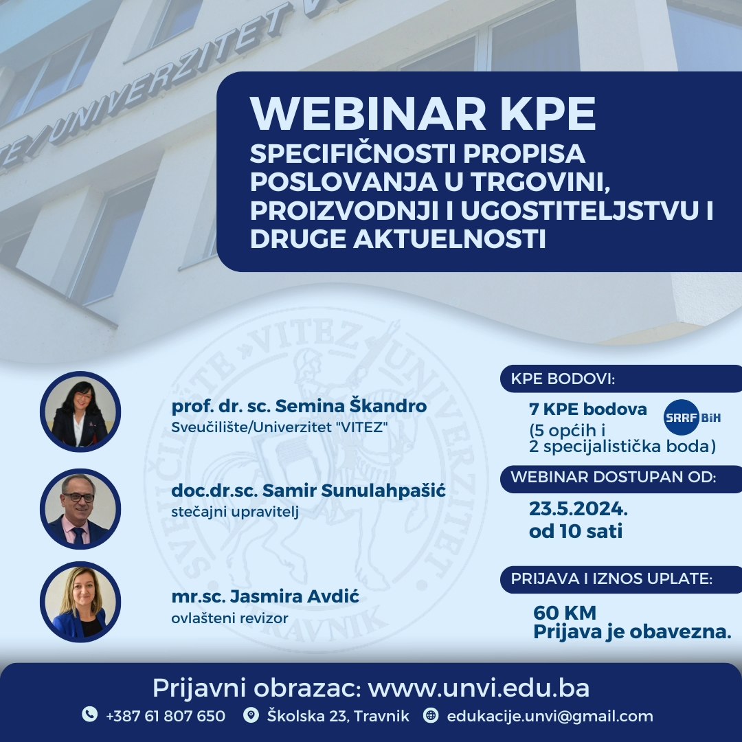 Prijava na webinar koji će biti dostupan od 23.5.2024.godine je OBAVEZNA, a prijavni obrazac i program webinara su dostupnk na linku: https://unvi.edu.ba/…/kontinuirana-profesionalna…/